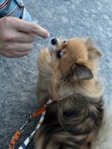 引っ張りはリードを短く持って自分より先に行かないようにして対処し、興味がないことに対してはおやつではなく一緒に遊ぶことによって興味をもってもらった