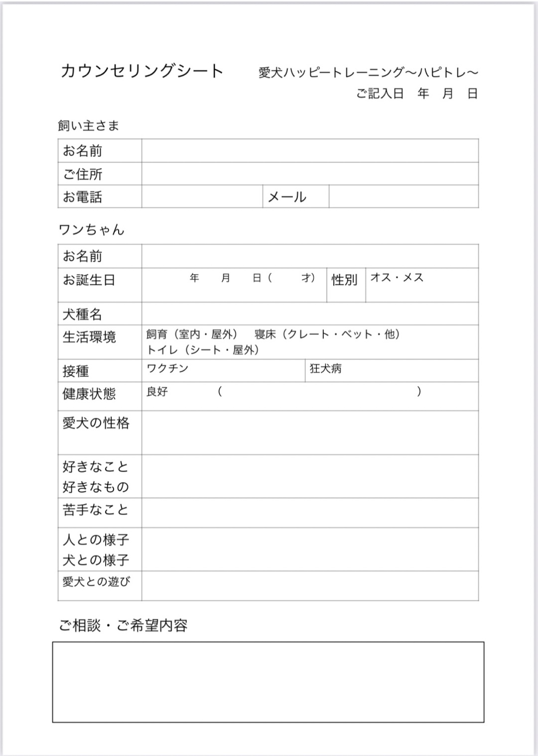 しつけに乾する簡単なご相談もOKです!