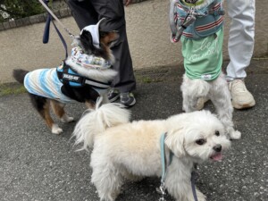 お散歩で仲良しさん。すぐ慣れてシェルちゃん、暖ちゃんみんなと仲良くできたね❤️