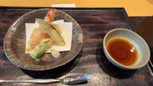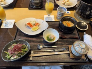 蟹づくしの特選たらば御膳【たらば焼蟹】【たらば天婦羅】【蟹グラタン】【茶碗蒸し】【小鉢】【サラダ】【お食事】【蟹汁】【デザート】