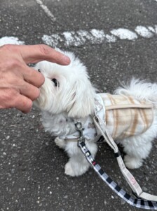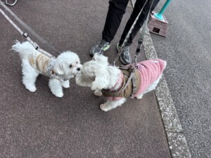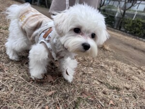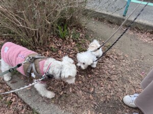 お外はあっちもこっちも気になるよね。匂いもいっぱい嗅いだね。フク追いかけて、あけたね。