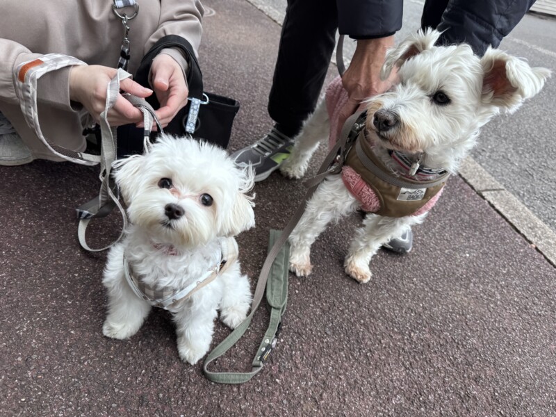 お外はあっちもこっちも気になるよね。匂いもいっぱい嗅いだね。フク追いかけて、あけたね。