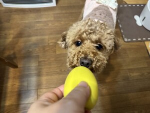 オスワリ、オモチャキャッチ上手👏