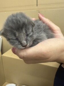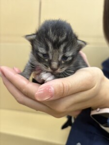 現在、保護者さまが毎日ミルクをあげて育てています。可愛い子猫ちゃんです。
