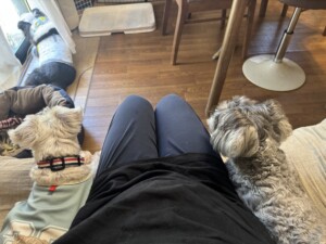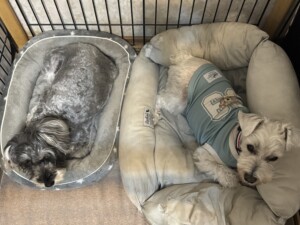 夜はクレートから抜けて隣にいたね🤭
