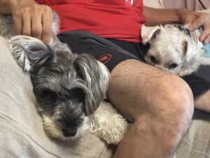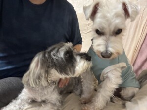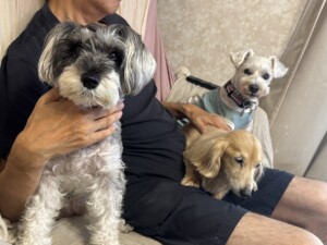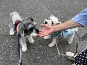 マロンちゃん、シェルちゃん、ハクちゃん、みんなと距離縮まったね❣️お散歩ではまるちゃんともラブ❤️仲良くなったね。